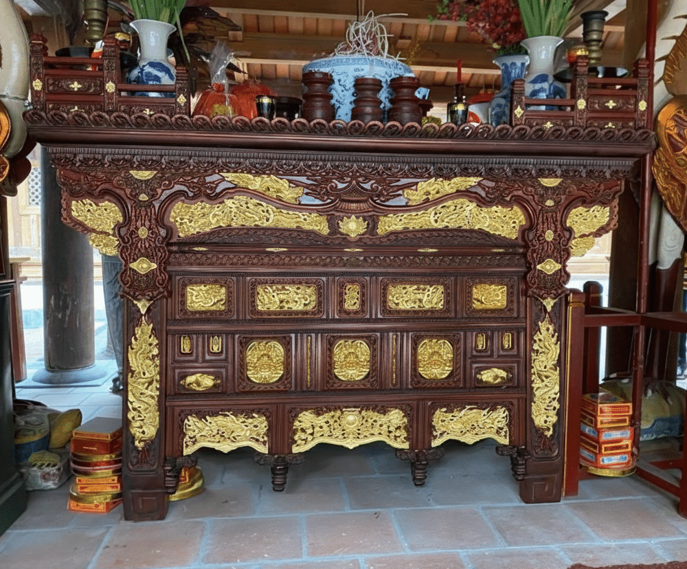 Bàn Thờ Chấp Tải Thếp Vàng là mẫu bàn thờ cao cấp mang đậm nét văn hoá tâm linh Việt, được chạm khắc thủ công tinh xảo và phủ lớp thếp vàng sang trọng. Đây là lựa chọn hoàn hảo cho các không gian thờ cúng cần sự trang nghiêm, uy nghi và đẳng cấp như tư gia, nhà thờ họ, đền – điện, từ đường.