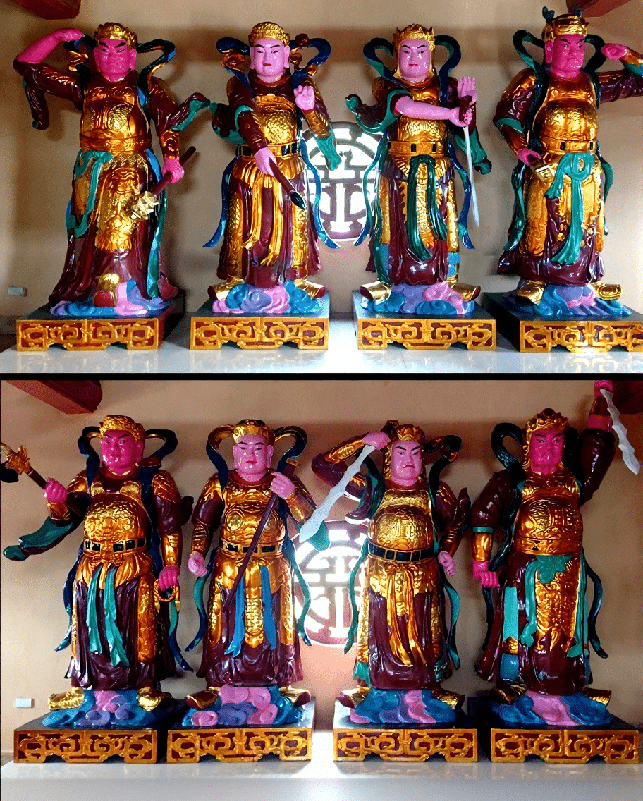 Mỗi pho tượng đều được chạm khắc thủ công tỉ mỉ, thể hiện khí chất dũng mãnh nhưng hài hòa tổng thể.