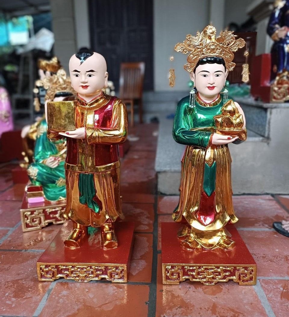 Tượng Cô Tượng Cậu sơn son thếp vàng là dòng tượng thờ cao cấp bậc nhất, thường được an vị tại điện lớn, phủ thờ, đền, bản hội. Pho tượng không chỉ mang giá trị thờ tự mà còn là tác phẩm mỹ thuật tâm linh, thể hiện sự trang nghiêm, linh khí và đẳng cấp của không gian thờ.
